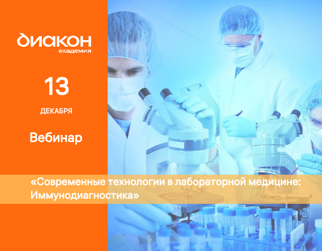 13 декабря в 11.30 Академия ДИАКОН проведет вебинар на тему «Современные технологии в лабораторной медицине: Иммунодиагностика»